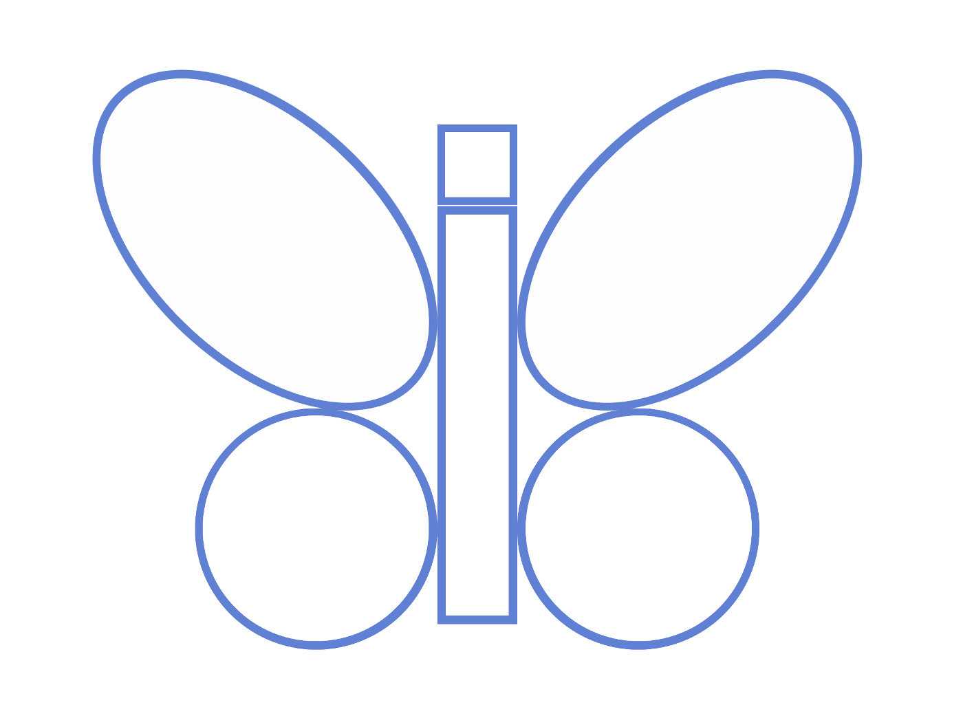 На картинке-схеме дети выкладывают изображение бабочки из геометрических фигур. Воспитатель просит показать заданную фигуру и назвать ее цвет.