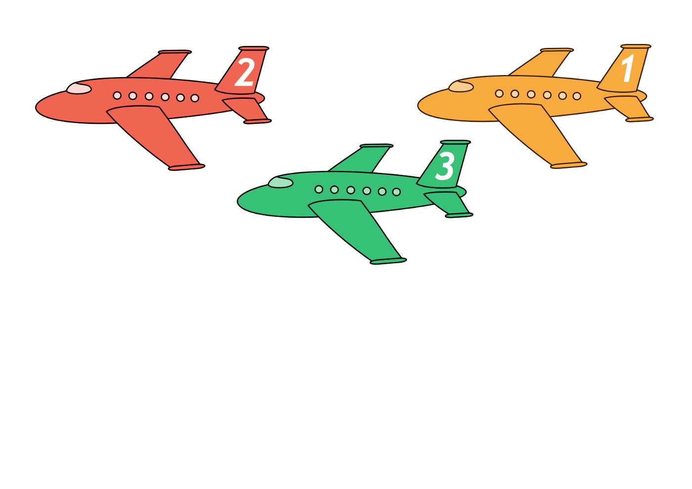 Картинка-фон с изображением трех самолетов с цифрами «1», «2», «3» на борту, цветные силуэтные фигурки парашютистов.