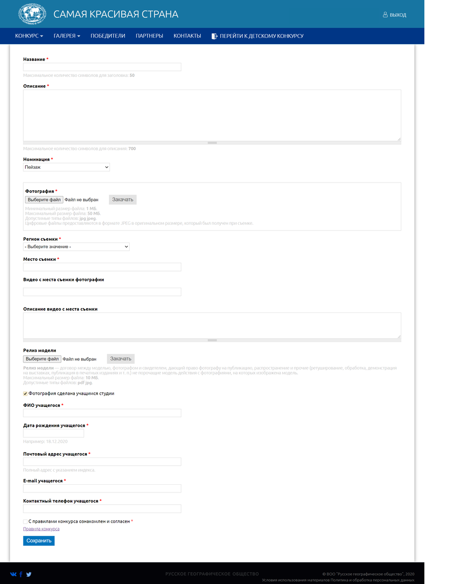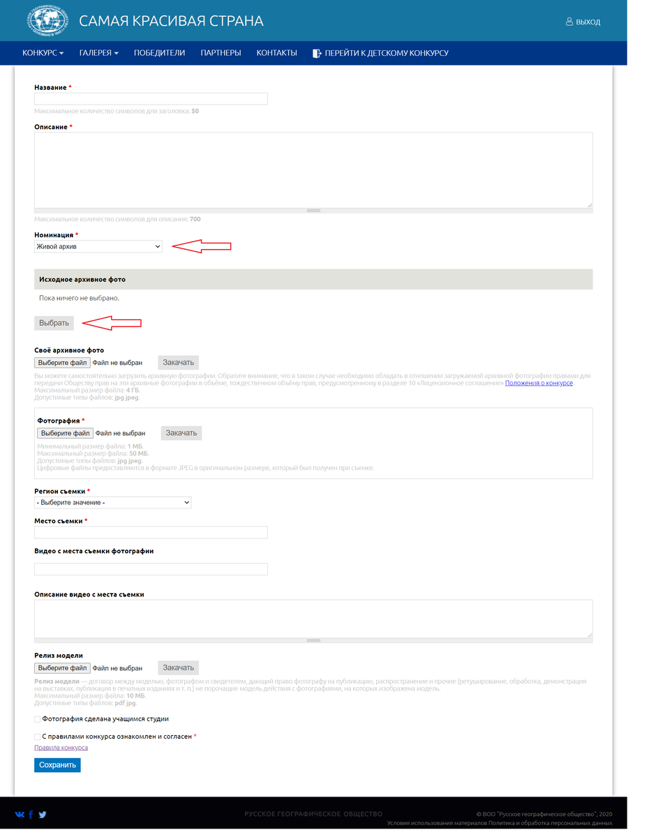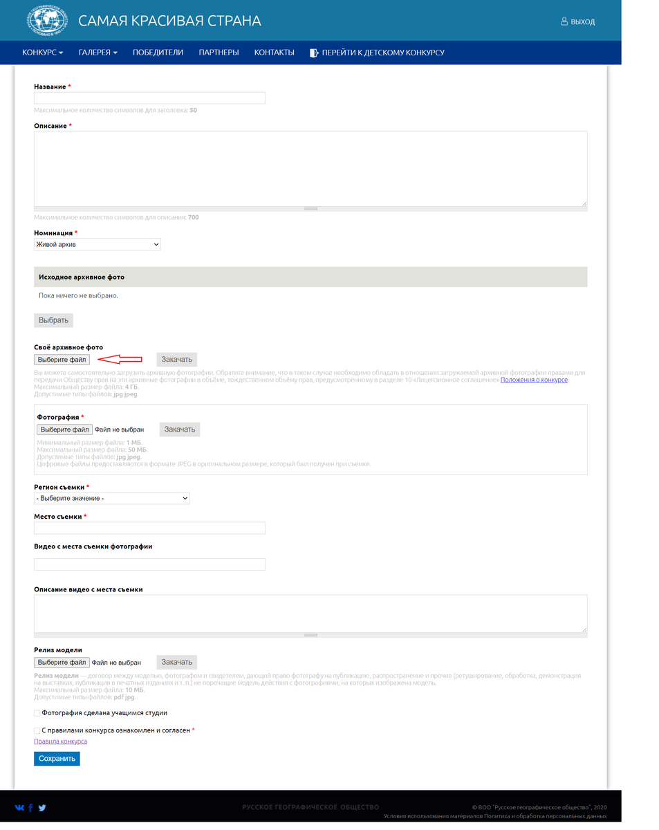 Некоторые номинации имеют свои особенности при загрузки на сайт, это номинации “Фотопроект” и “Живой архив”.