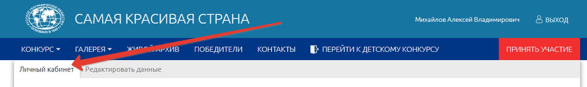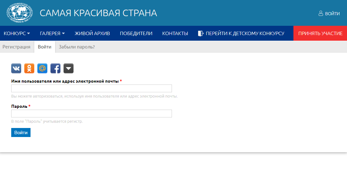 Чтобы загрузить фотографию на сайт, нужно войти в свой личный кабинет https://photo.rgo.ru/user
