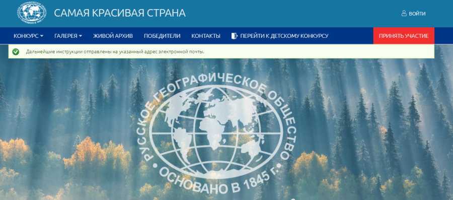 5. После успешного заполнения всех полей и нажатия кнопки “Регистрация” на сайте появится сообщение “Дальнейшие инструкции отправлены на указанный адрес электронной почты”.