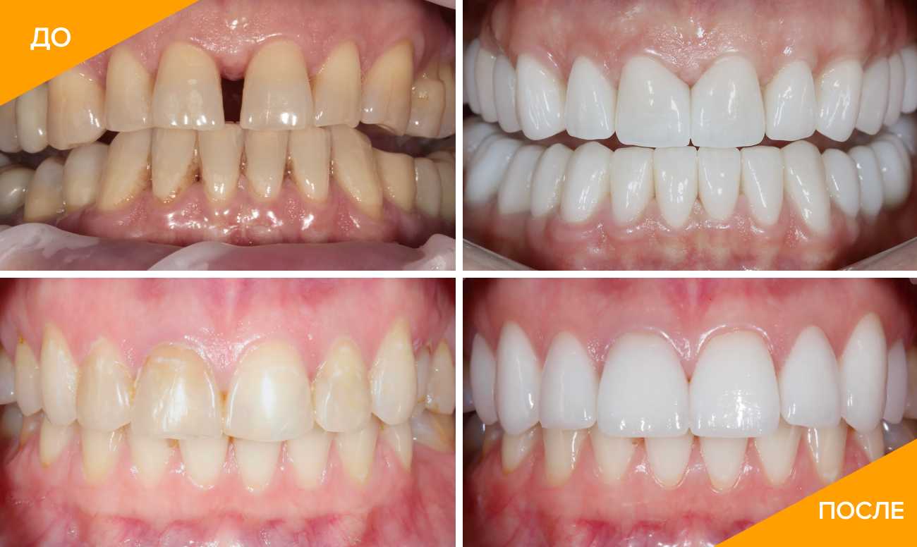 Фото до и после установки виниров в клинике SDent ортопедом Мамедовым И.В